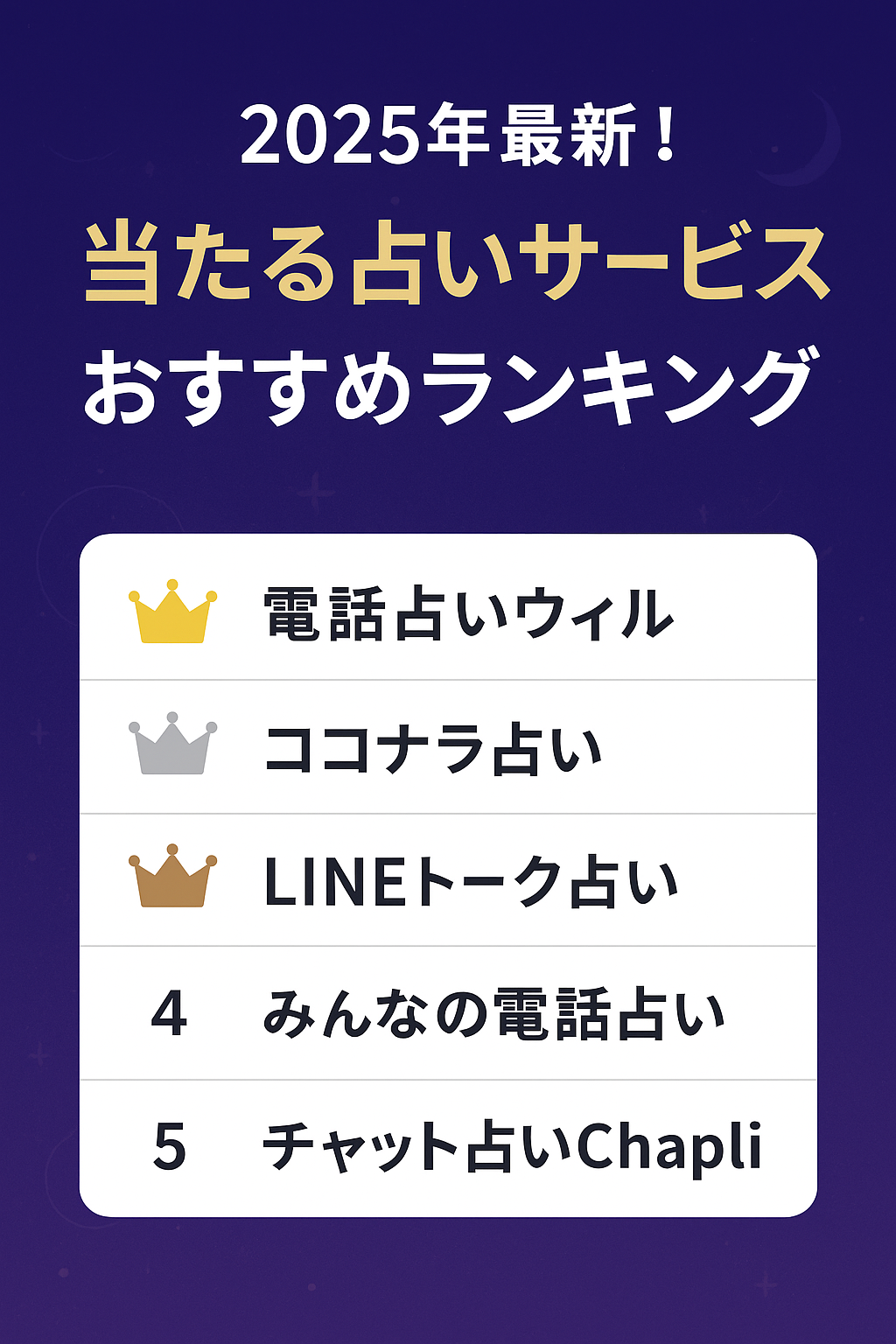 「どの占いサービスを選べばいいかわからない…」そんな悩みを抱える人は多いのではないでしょうか。この記事では、口コミや評判をもとに2025年最新のおすすめ占いサービスをランキング形式でご紹介します。初心者でも安心して利用できるポイントもあわせて解説します。